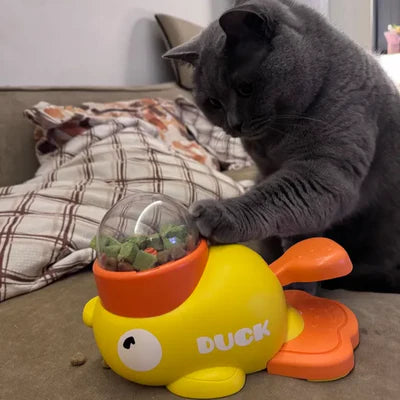 I use it more as a treat thing than a full meal setup, but it works either way. My cat caught on pretty quick. I showed her once and she started whacking the lever like it was her job. She doesn’t rush through it, which is kind of the point. And yeah, it stays in place better than I expected.